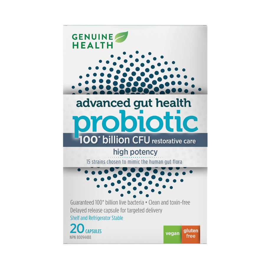 advanced gut health probiotic high potency 100 billion, 20 capsules